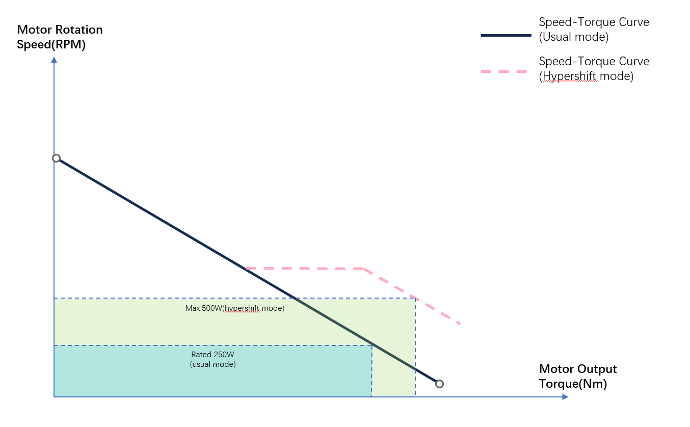 If high resistance is detected (e.g., steep hill, slow speed, or increased effort), Hypershift engages and delivers elevated power. Once conditions normalize—or the time limit is reached—the system reverts to normal mode to prevent overheating.